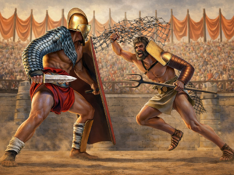 Arena savaşı oyunu oynarken Roma İmparatorluğu dönemine gidip halkın önünde gerçek bir savaş yapıyorsunuz. Savaşlar şehrin merkezlerine inşa edilmiş büyük kolezyumda yapılıyor. Kolezyumun her iki ucunda da tarafların maketten inşa edilmiş kale ve şehirleri vardır. Önce kasanızda bulunan altınları kullanarak ordu kuruyorsunuz. Sonrada düşman ordusu ile çatışıp kalesini fethetmeye çalışıyorsunuz.